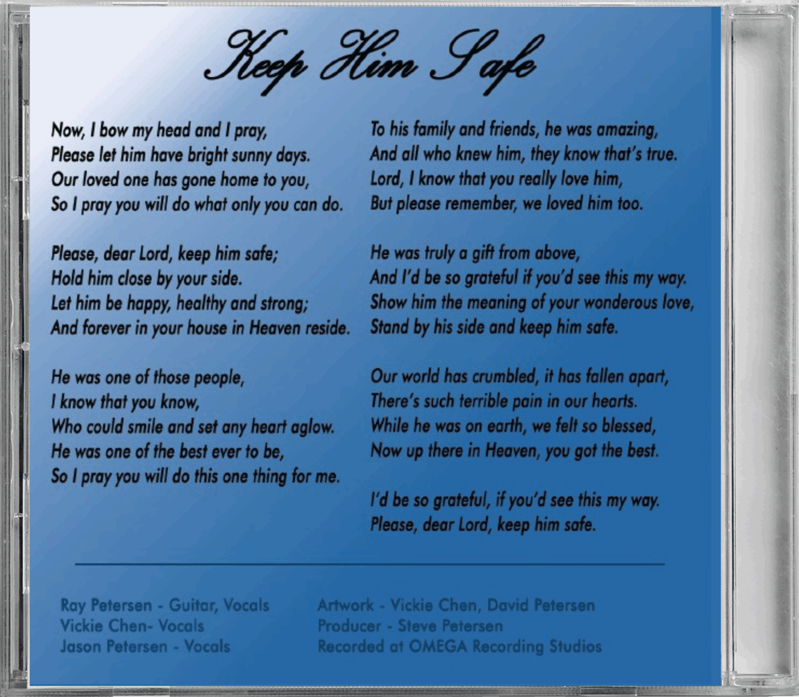 “Keep Him Safe” CD by Ray Petersen Music.